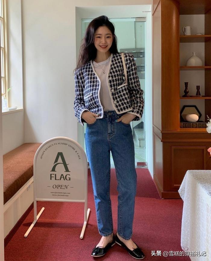 ⑵短層次穿搭+精簡下半身=洋氣又顯高