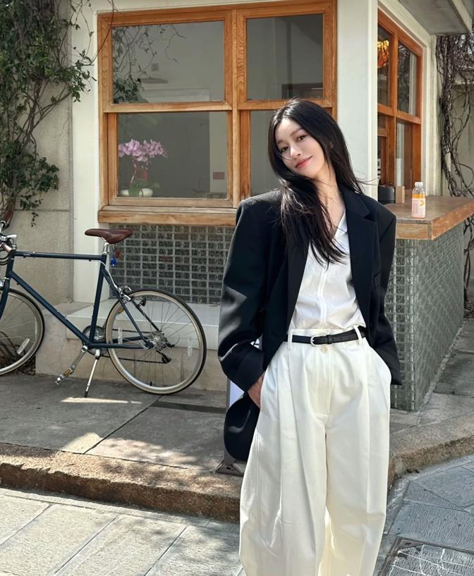 反而是要將大方率性的女性魅力呈現,展現出強大的氣場,特別是黑色西裝,這種百搭款地位穩固,色彩上更讓人感受到瘦身效果。內搭白色襯衫,很經典的組合,黑白的配色,也爲整個搭配增添一份高級。