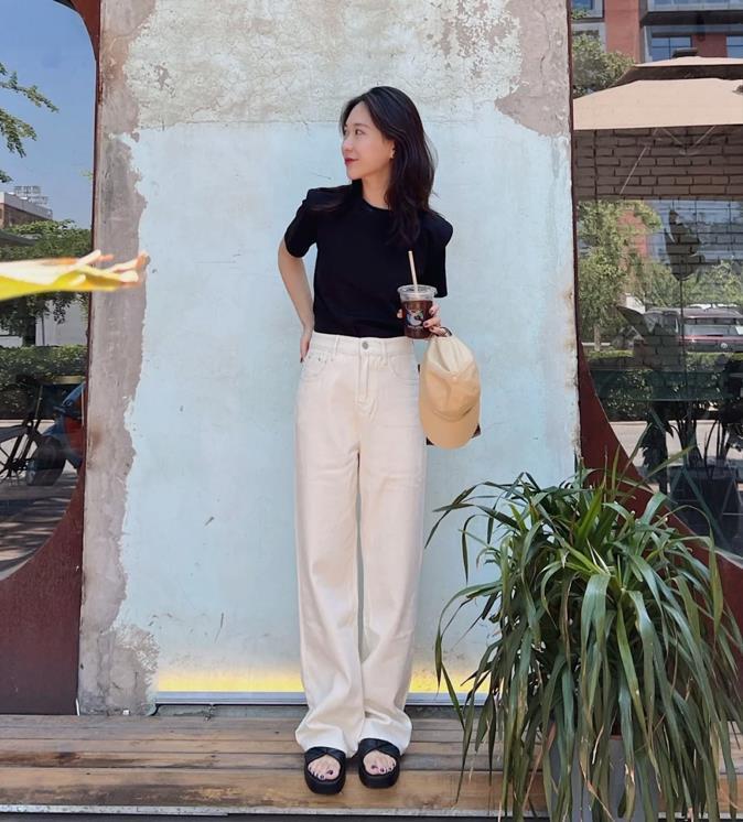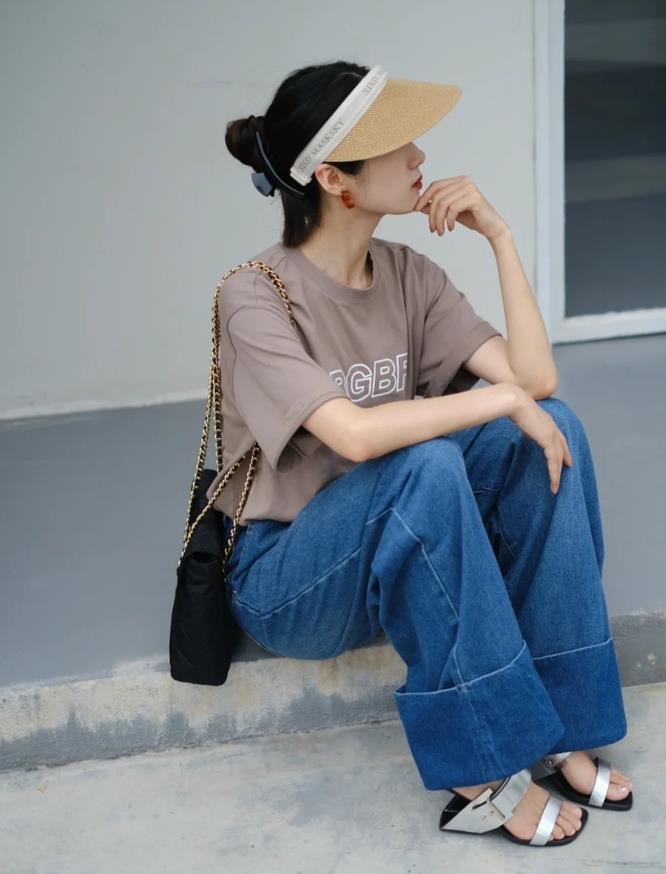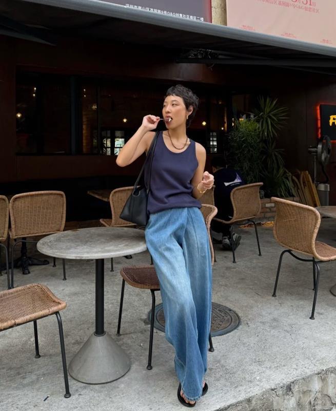 在夏季,選擇牛仔闊腿褲與涼鞋搭配,無疑是很明智的選擇,涼鞋的輕便和透氣,能夠應對炎炎夏日,讓你在高溫天氣裏也感受到一絲清涼。