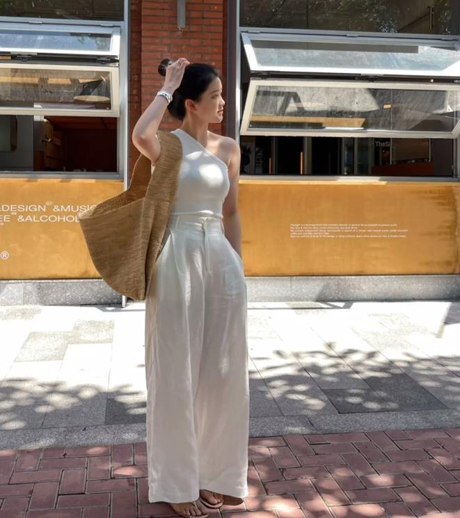 白色,是很純淨的顏色,無疑是這個夏季最佳的選擇之一,不管是上衣,還是下裝,穿起來都能減少熱量堆積,又能展現出清新的氣息。一條白色闊腿褲,寬鬆舒適又顯高級,搭配一雙簡約的涼鞋,瞬間增添了一份隨性和自在。