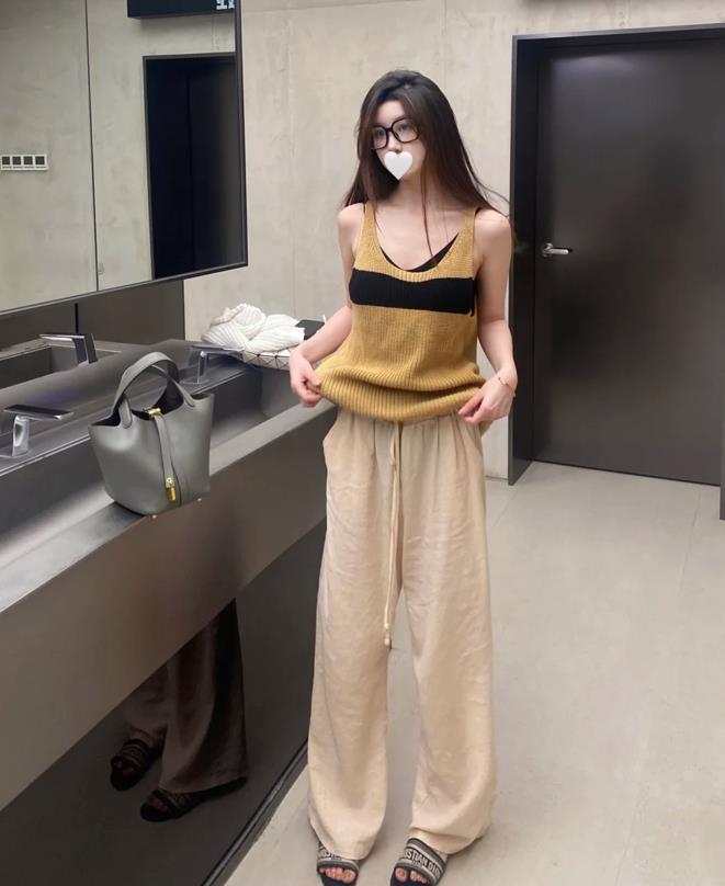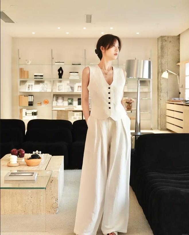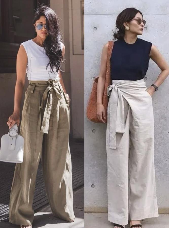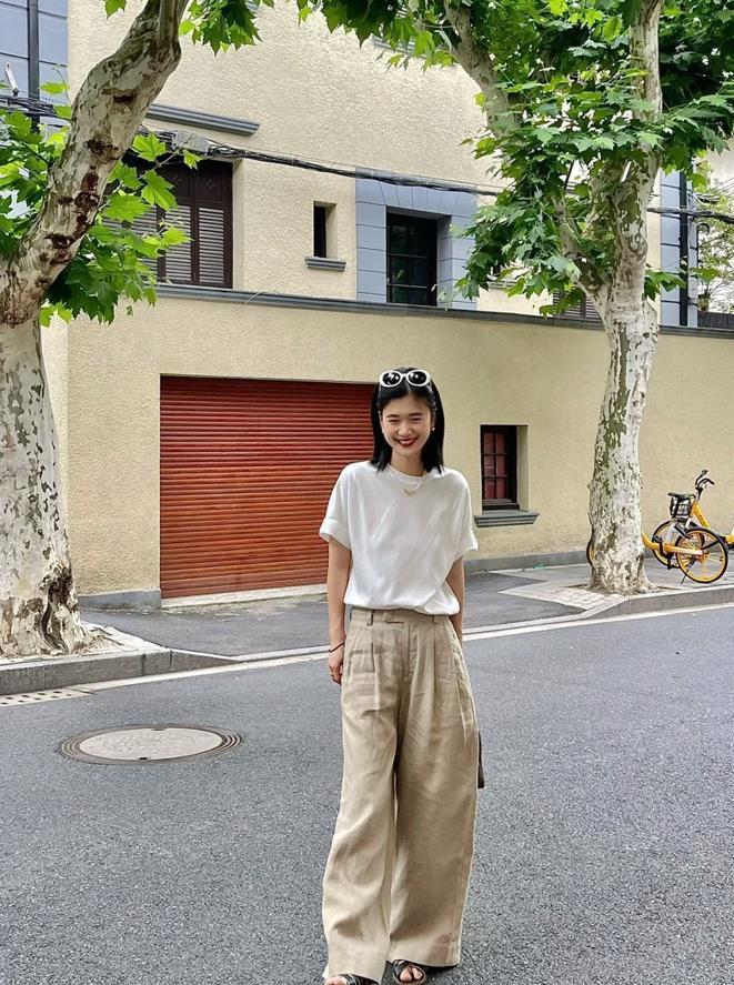 同時,亞麻闊腿褲也可以與各種上衣相配,例如短袖t恤、吊帶背心、襯衫等,喜歡簡約優雅風格着裝的,可以配白色或黑色上衣。