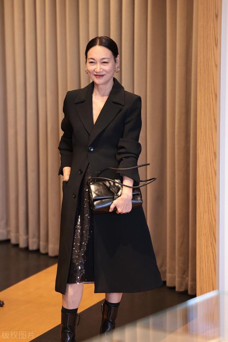 惠英紅64歲的年紀,從來都不穿老年裝。她的狀態依然是年輕的、精神的。西服外套也會搭配稍微個性一點的款式,以白色撞色拼接,多了幾分減齡效果。