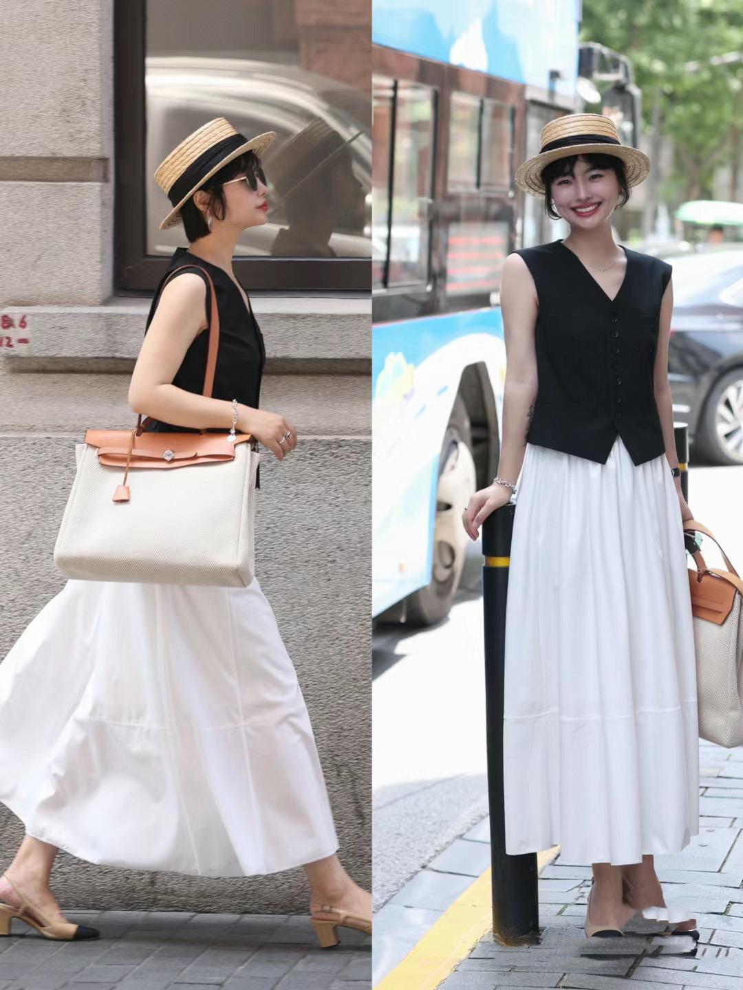 不管是冷白皮還是暖黃皮,都可以自信的穿着白色半身裙。白色半身裙,搭配過膝的長度,大量感的裙襬,優雅穩重。配修身的西裝馬甲穿着,高級還洋氣。