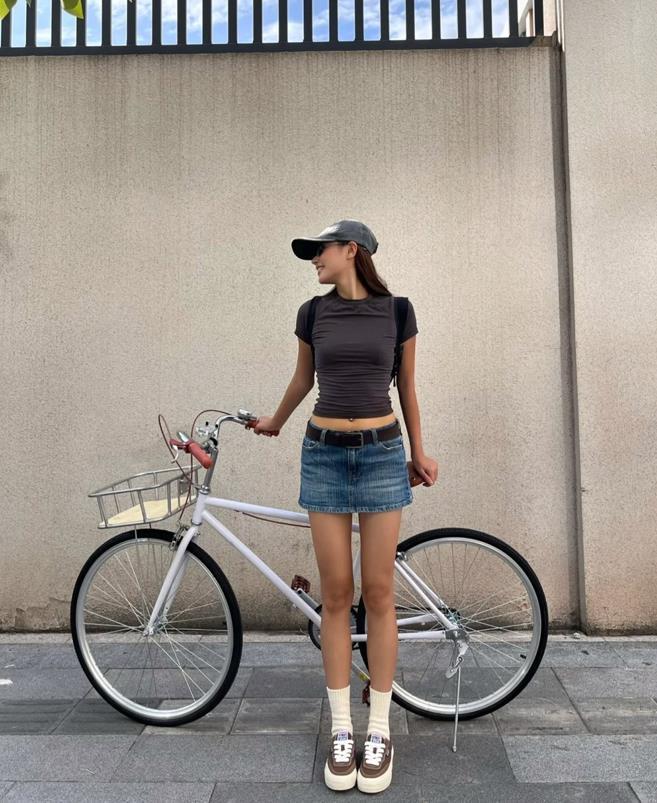 牛仔半裙不僅時尚百搭,還能應對各種場合的穿搭,不管是日常休閒逛街,還是約會聚餐,亦或者是職場通勤,它都能輕鬆勝任。在搭配上,上衣可以簡單配件白色t恤,就可以營造出清爽自然的風格。
