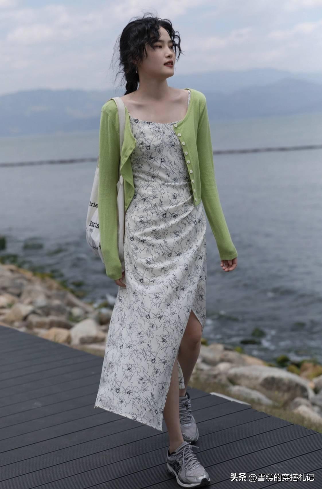 作爲春天出鏡率最高的連衣裙,首先最需要避雷的就是短款和緊身設計,避開這兩個雷區之後,就要往正確的方向出發。長度超過小腿中部的位置,對身材的包容性更高,而且還能延伸身材比例。