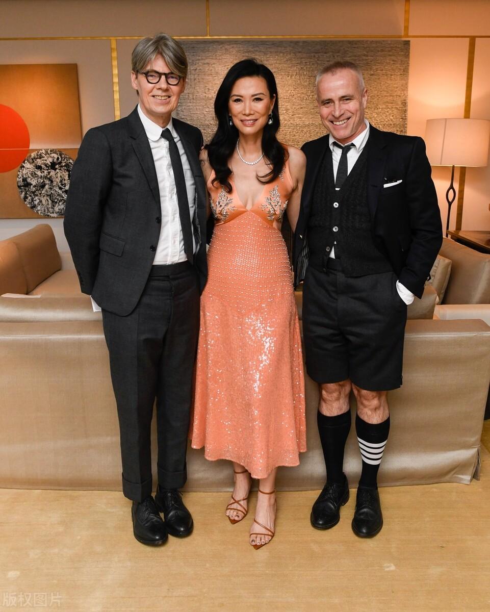 鄧文迪的這條橘粉色長裙,依然是深V領的設計。雖然身形不夠挺拔飽滿,但這種八字身材不正是中年女性特有的魅力所在嗎?
