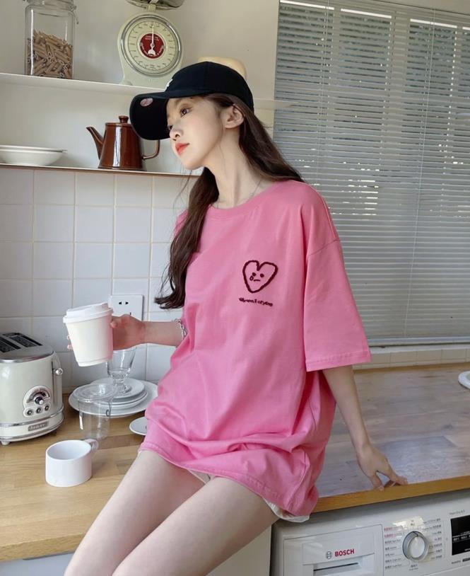 甜美風的丁達爾穿搭,夏日甜妹必備的桃粉色,真的是很襯膚色又顯白,寬鬆簡約的T恤,對身材有着極佳的包容性,顯瘦藏肉。搭配白色短褲,元氣甜美look就打造了,下身玩失蹤的穿法,真的非常顯腿長。