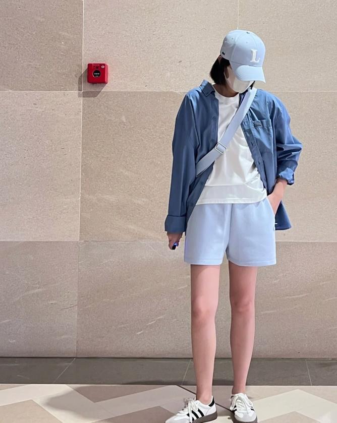 白t恤+嬰兒藍短褲+天青藍襯衫,在這個陽光明媚的日子裏,丁達爾的穿搭就是可以帶給你清新簡約的風格,讓你輕鬆在人羣裏脫穎而出。