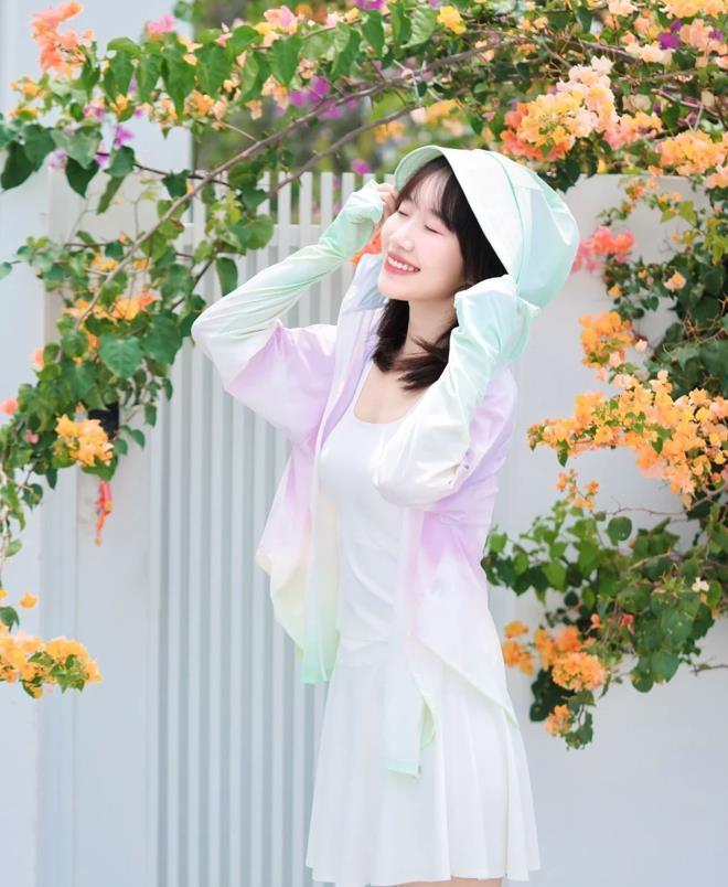 丁達爾的穿搭就是今年夏天最流行的一種搭配了,試試這種漸變色的穿法,顏色好明媚清新,防曬衣是漸變的設計,材質透氣舒適,上身也是那種冰冰涼涼的觸感。內搭選擇基礎款就可以了,白色的內搭和下裝,與漸變色防曬衣相襯,一簡一繁就是時髦。