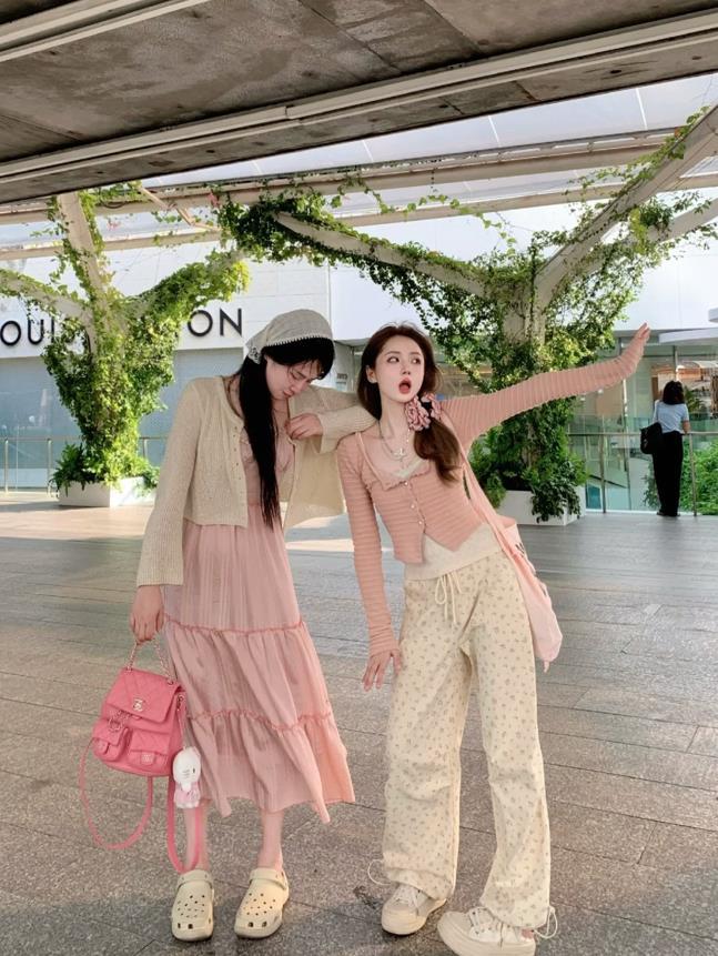 五一假期出遊,約上你的好姐妹一起去玩耍吧,姐妹出遊,配色可是很重要的,沒有一位少女會拒絕粉色,這一套簡直將丁達爾的時髦展現得淋漓盡致。