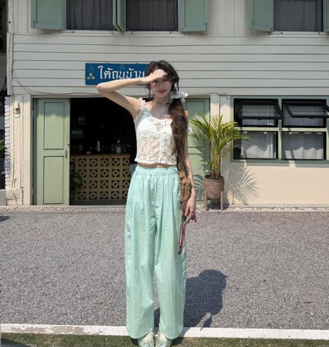 淺淺過個夏天吧,薄荷綠的顏色實在是太愛了,這種低飽和度的綠色,哪怕你是膚色暗沉,黃黑皮的姐妹也能駕馭。白色小吊帶+薄荷綠長褲,不管是出門逛街,還是度假都合適。