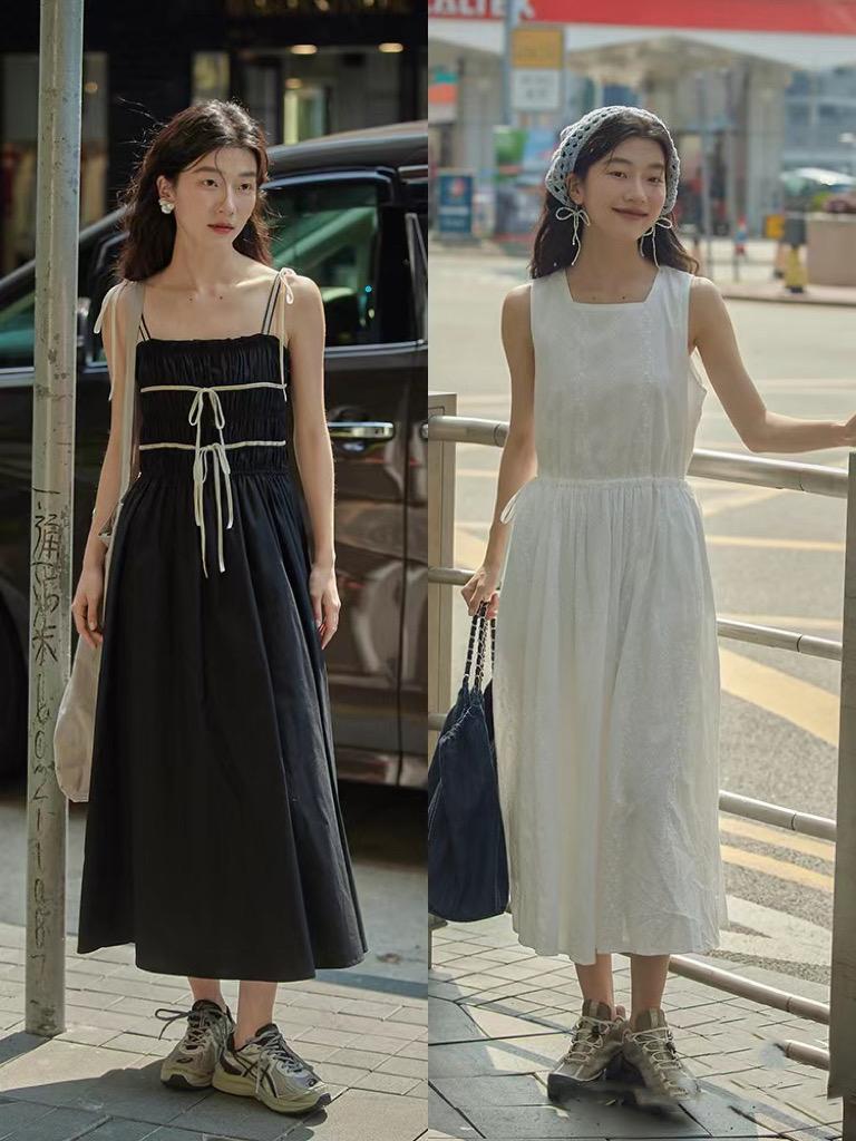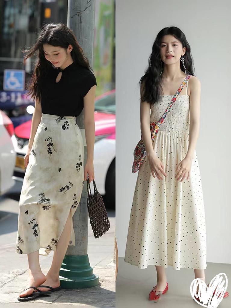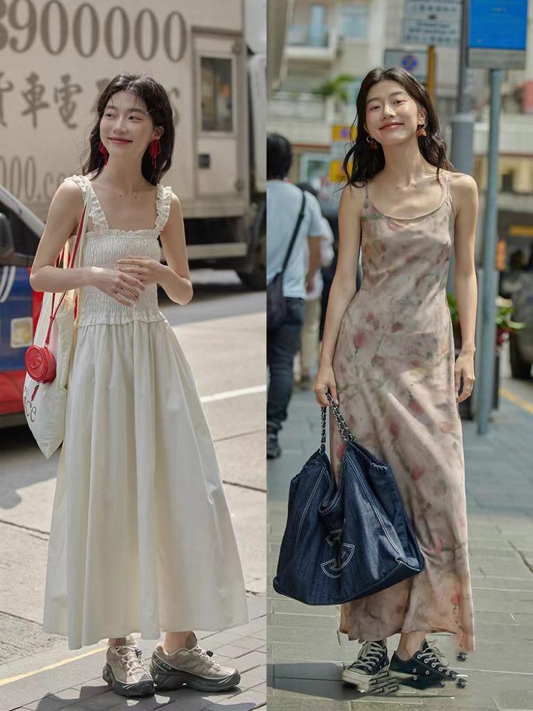 不管是輕盈的吊帶裙、還是高腰的半身裙,在初夏時節,都可以配平底鞋來穿着,溫柔大方也更顯氣質美。