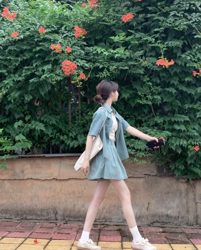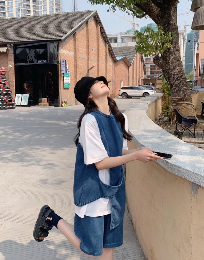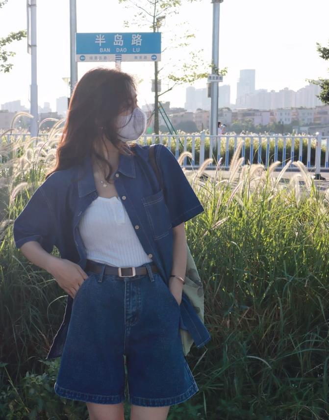 夏天和牛仔更配哦,小個女生在選擇牛仔套裝時,如果身材情況允許的話,可以選擇牛仔短褲套裝,不僅顯得復古還非常休閒,看起來也太減齡了。材質上更要入手透氣性好些的,可不能選太悶熱的面料了。
