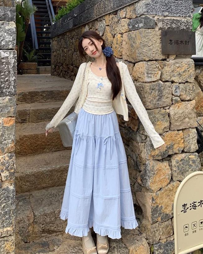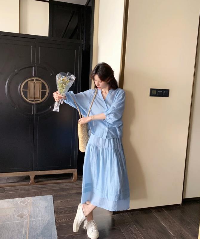 這個夏天,就是要用藍色裙子來降溫,很清爽的半身裙兩件套,寬鬆的版型,並不會對身材有什麼限制,反之是帶給身材無限的包容。