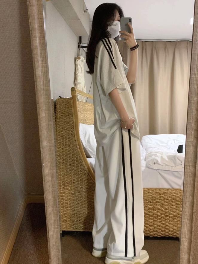 喜歡這種帶着慵懶、隨性又舒適的運動套裝,覺得自己身材不允許穿短褲、短裙類型的運動套裝,那麼就選擇長褲款式的吧。寬鬆的長褲版型,實在是太不挑身材了,腿粗腿型不夠筆直都可以駕馭。