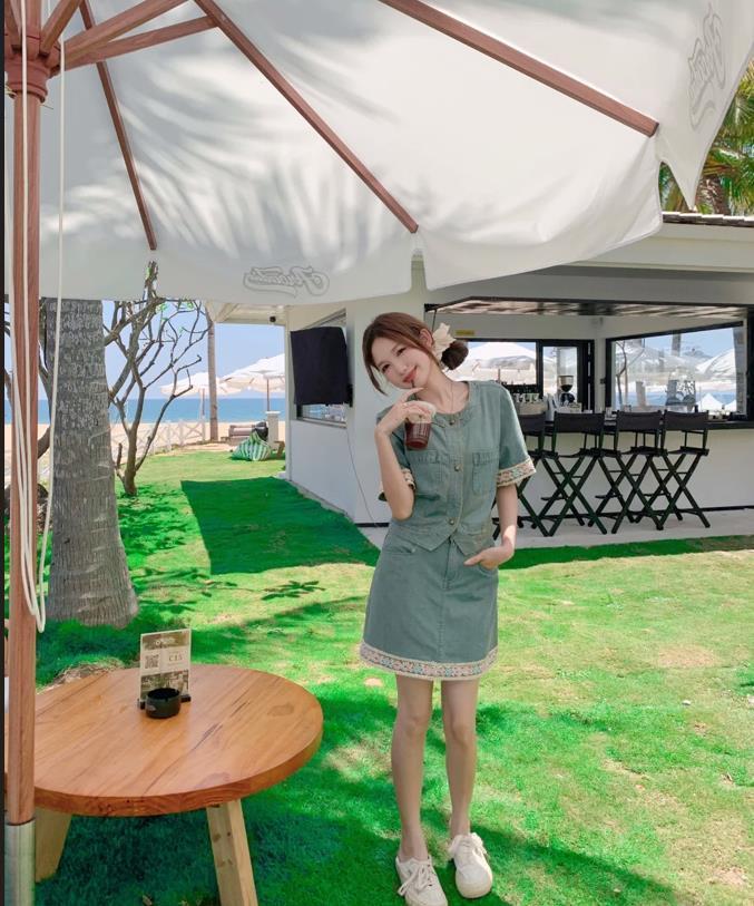 牛仔短袖上衣+牛仔半身裙,這纔是今年夏天炸街的最佳組合,上衣版型是有些寬鬆的,穿起來不僅顯高顯瘦,還帶着幾分慵懶隨意的味道。裙襬和袖口處都進行了細節處理,看起來真的十分顯精緻個性。
