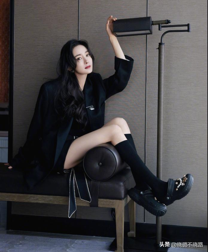 洞洞鞋本覺得日常出街,想要舒適還是一種不錯的選擇,但哪來搭配氣質西裝或者出席場合,是不是就有點太不適合了,像楊冪這一身穿搭,搭配一雙高跟鞋或者過膝靴不比洞洞鞋更有氣質更有高級感嗎?