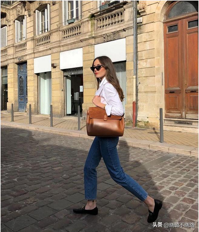 樂福鞋屬於低幫鞋,這個時候適當的露出一部分腳部肌膚更顯腿長,對自己腿型沒有信心,擔心暴露自己X型腿O型腿等缺點的姐妹,更推薦九分褲的搭配,下半身偏胖可以選擇闊腿褲的版型,小個子的姐妹可以選擇一雙厚底樂福鞋來增加視覺感。
