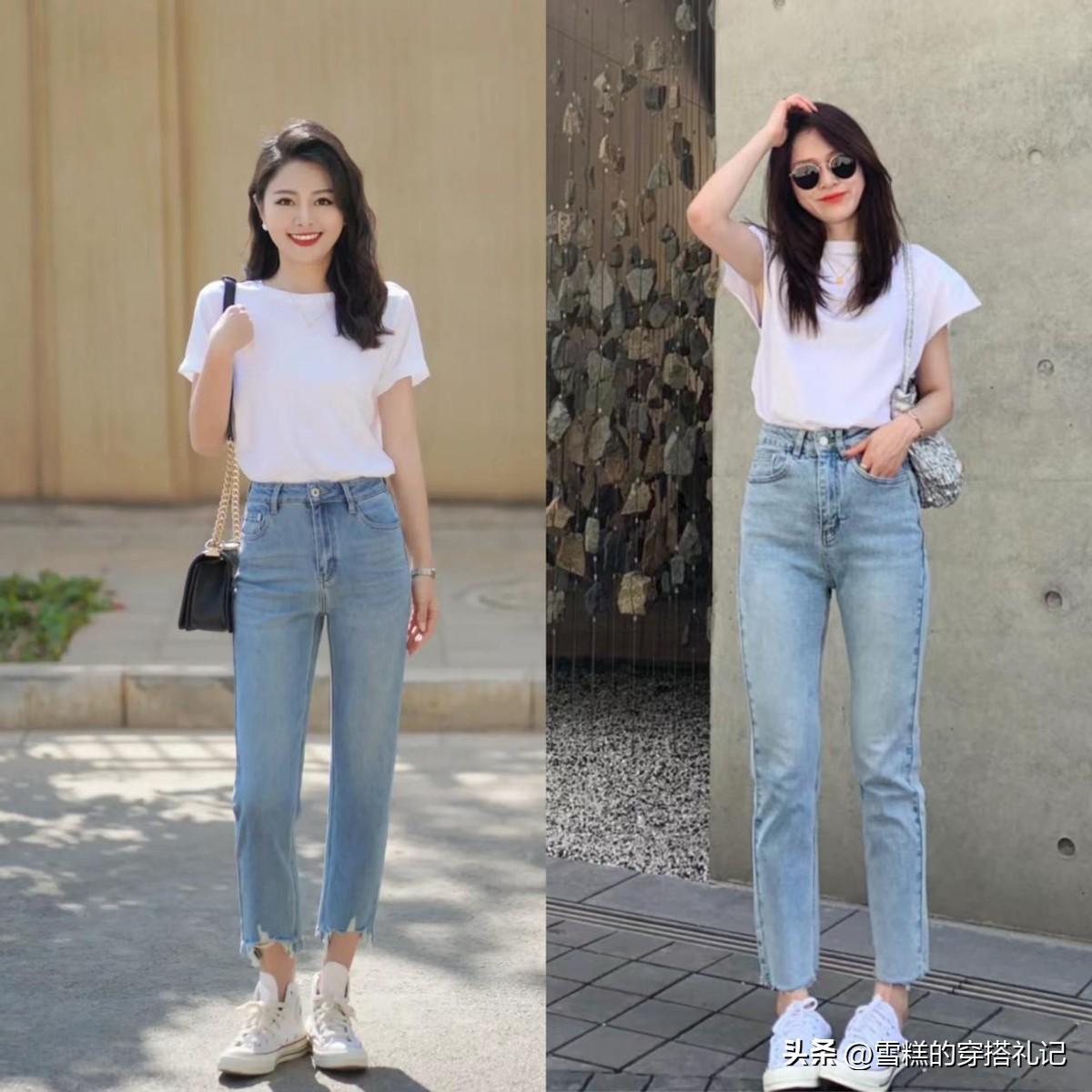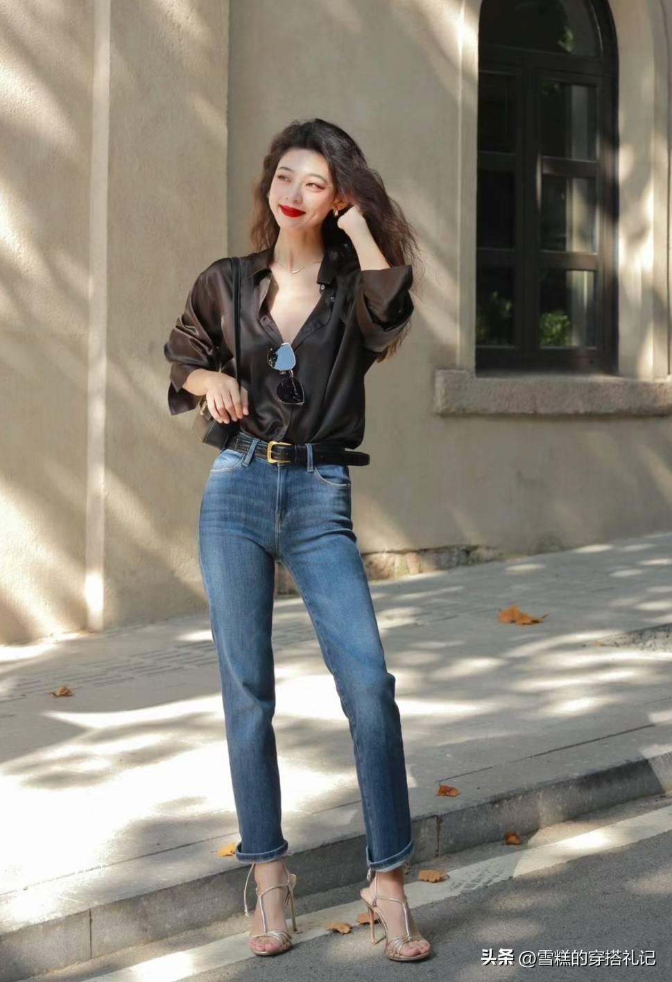 牛仔材質和煙管褲型匹配度最高,並且也很符合日常穿搭的需求,它們二者之間相得益彰,可以幫助中年女人躲避身材的短板,穿出顯身材有抬氣質的效果。
