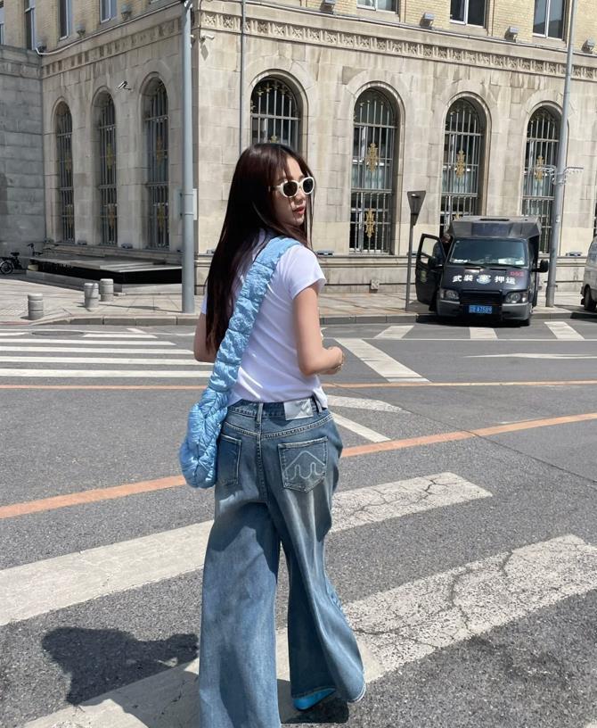 夏天就是喜歡這種乾淨舒適的穿搭,整體給人的感覺就是鬆弛,白色正肩t恤+闊腿牛仔褲,哪怕是基礎款也能穿得好看。