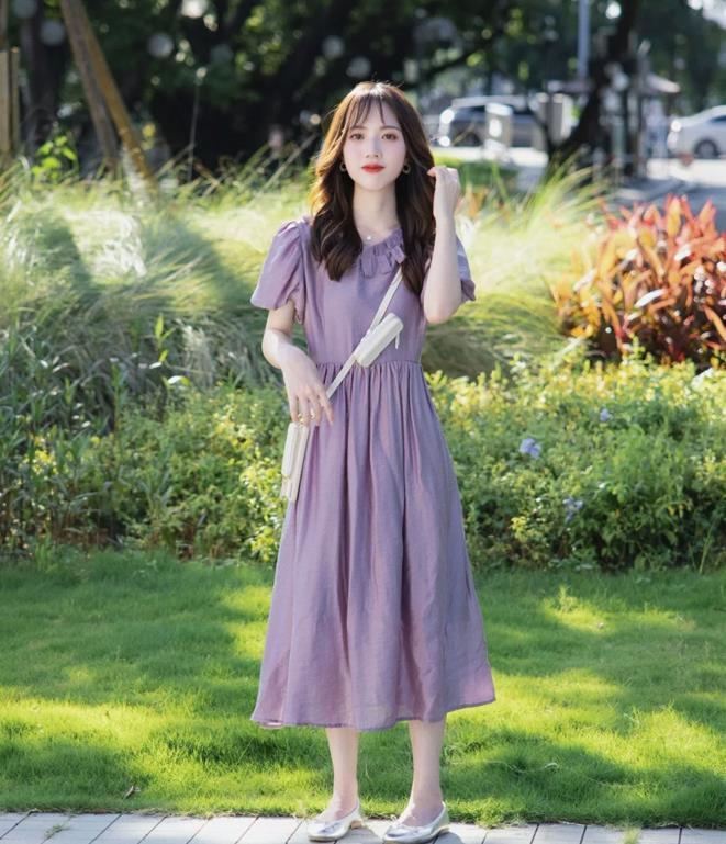 適合150+小個子女生的一條連衣裙,裙子長度在小腿上下左右的位置,顏色是淺淺的紫色,穿起來整個人都會變得很溫柔,日常上班約會都可以駕馭。當然了,這個色調也十分襯膚色和顯白,超級減齡的呢!