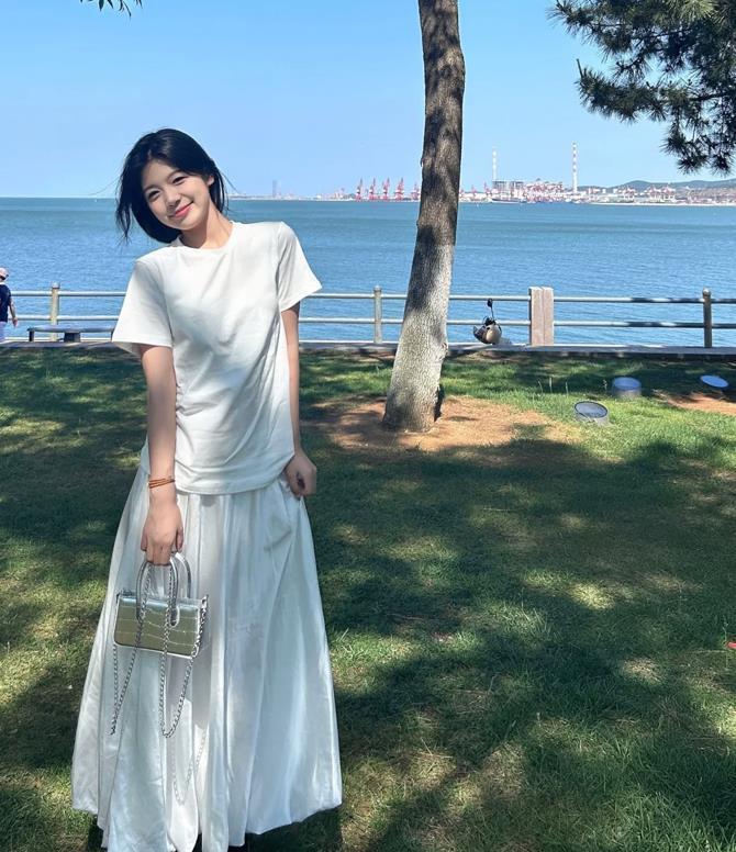 夏天真的是一個可以肆意穿衣服的季節,感覺在這個季節裏穿衣,完全沒有侷限感的,一身白色系的套裝裙,上衣是一件基礎簡約的白t,搭配同色半身長裙,不僅顯得休閒,還很溫柔。