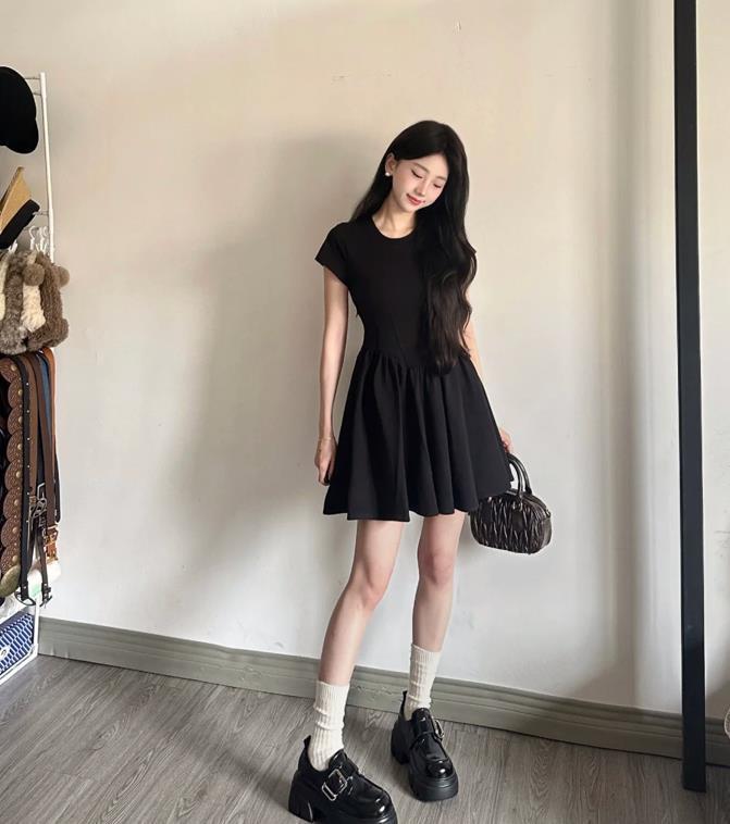 在夏季,裙子就是最受歡迎的單品之一,不管是半裙,還是連衣裙都是一樣的,小黑裙就是其中之一,裙子的款式和長度,都是設計得非常合理。小個子女生穿得話,搭配一雙黑色厚底鞋子,輕鬆顯高挑了。
