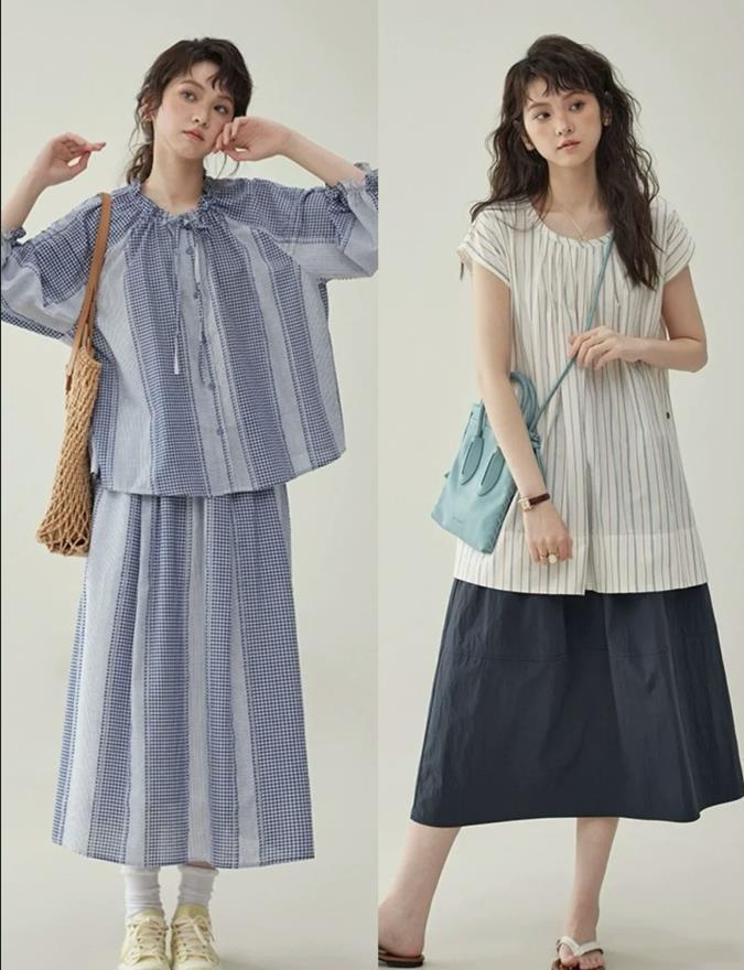 喜歡穿裙子的姐妹,一定要爲自己入手一條裙子套裝,淺藍色的套裝,很休閒舒適,也適合出遊。寬鬆的版型,對身材具有極佳的修飾和遮掩效果。搭配一雙涼拖鞋,或者是運動鞋就可以。