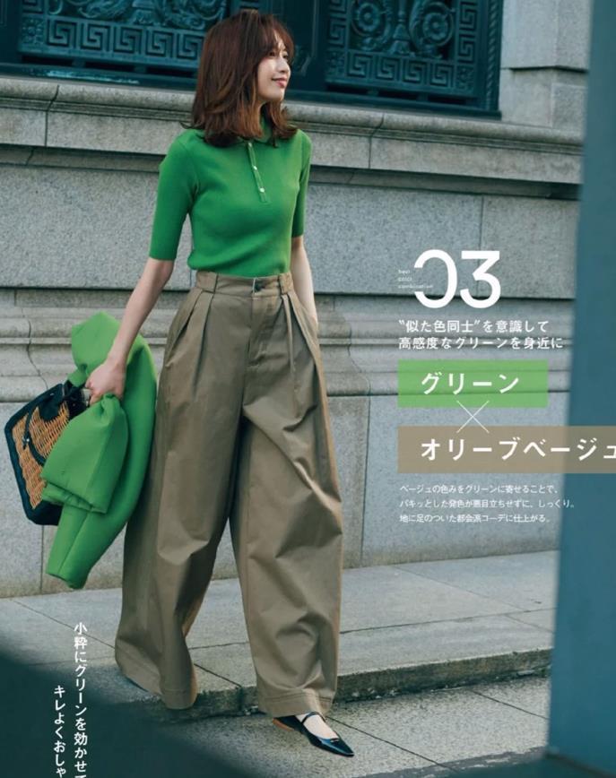 另外,黃黑皮膚的女性在選擇綠色單品來穿時,可以結合其他顏色來平衡,比如搭配白色、黑色或者是灰色,這些色調與綠色結合,能讓你整體配色更加和諧時髦。