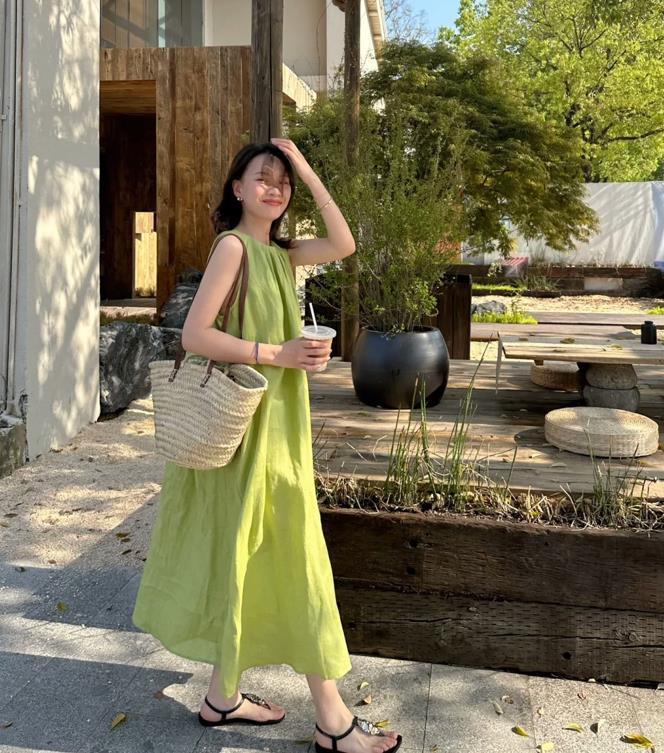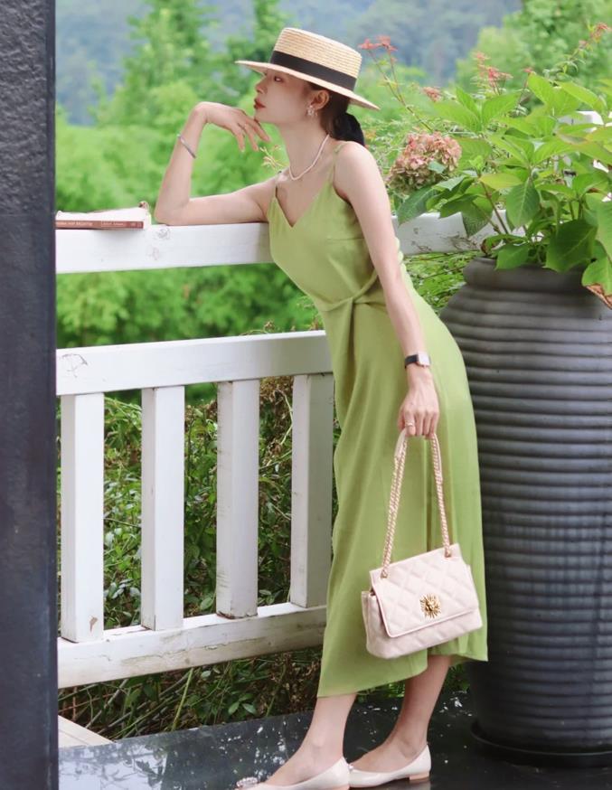 說實話,在夏天裏若是要選擇裙子來穿,要在短裙和長裙中作選擇的話,我更鐘情於長裙,棉麻材質的無袖連衣長裙,搭配牛油果的配色,實在是太顯白了,裙子棉麻材質,更是舒適透氣。