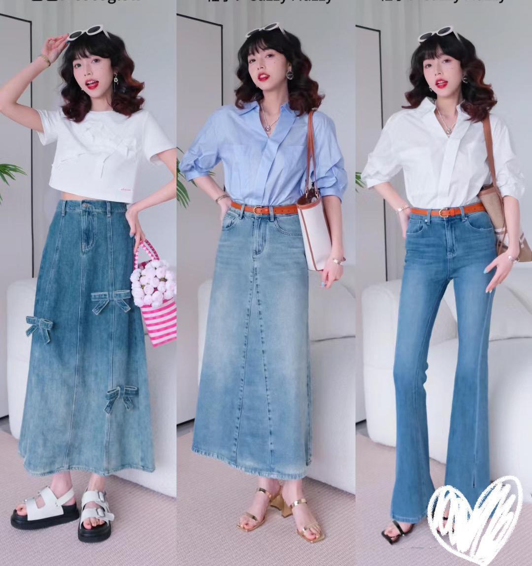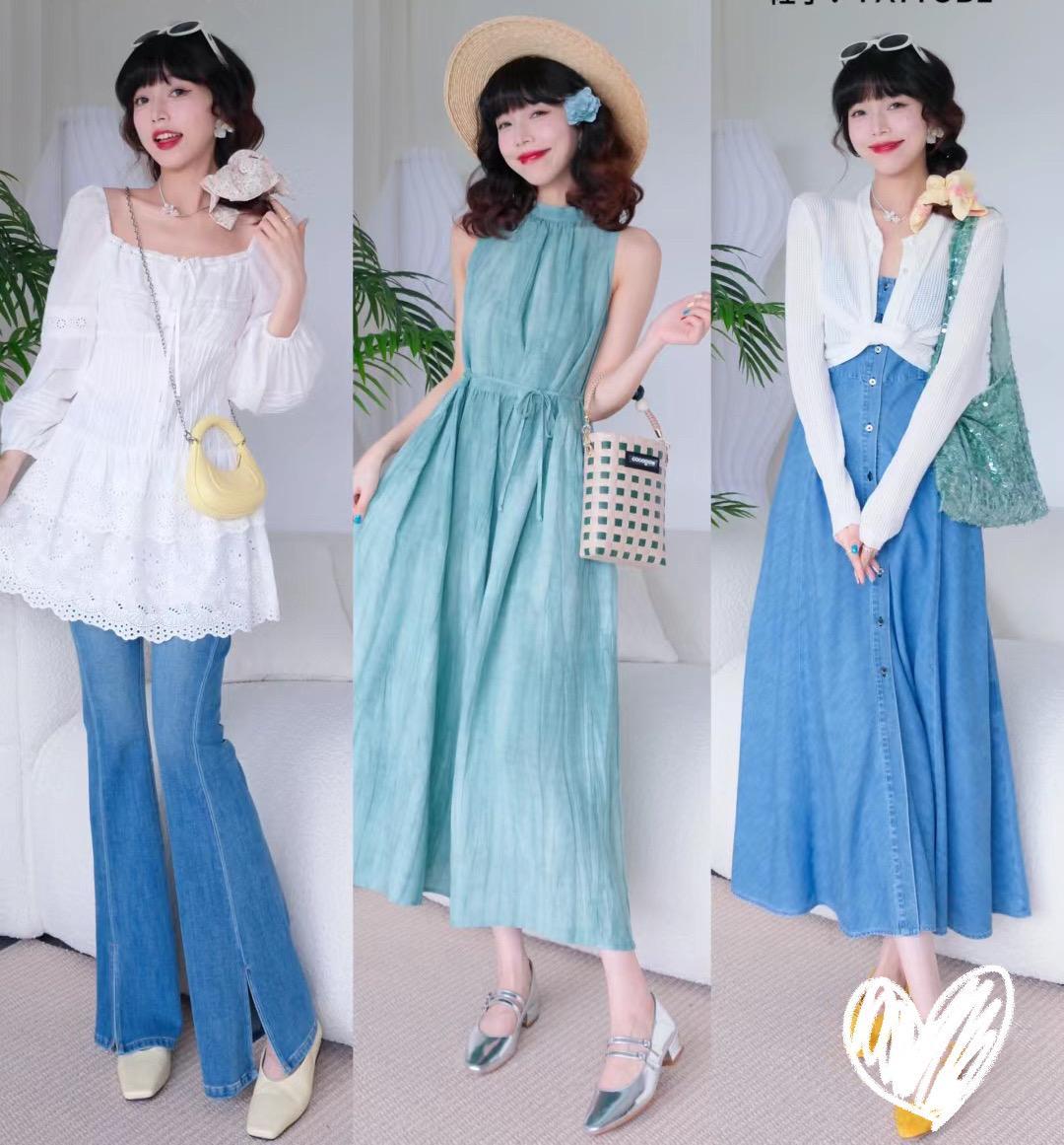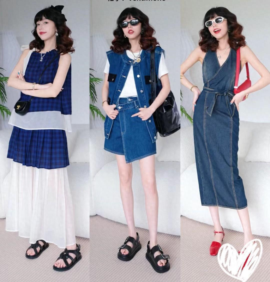夏天裏不管是高腰的牛仔半身裙,還是高腰的牛仔褲,都是小個子用來凹造型的單品。我們選擇牛仔單品的時候,可以選擇復古藍或者水洗藍,儘量搭配淺一點的藍色系,會更符合夏季氛圍。