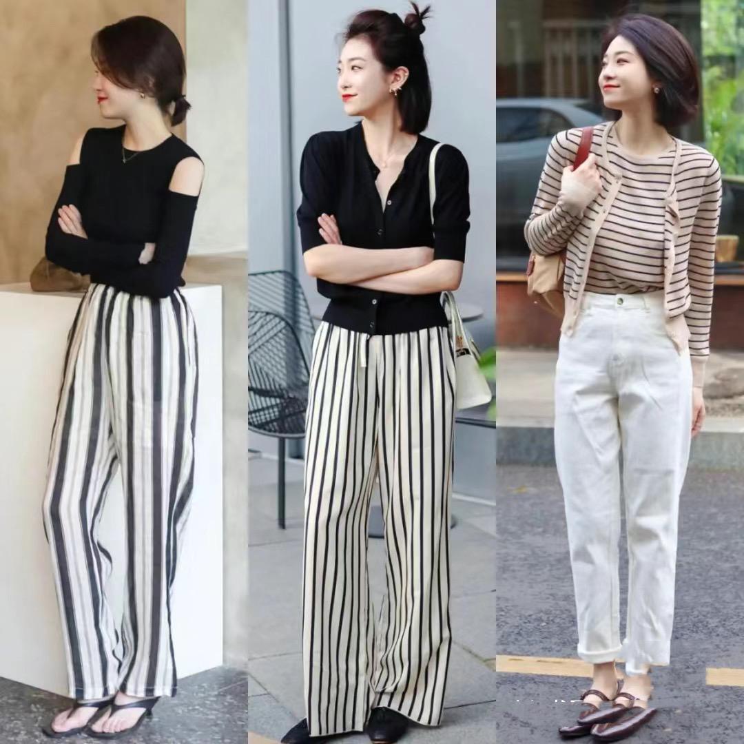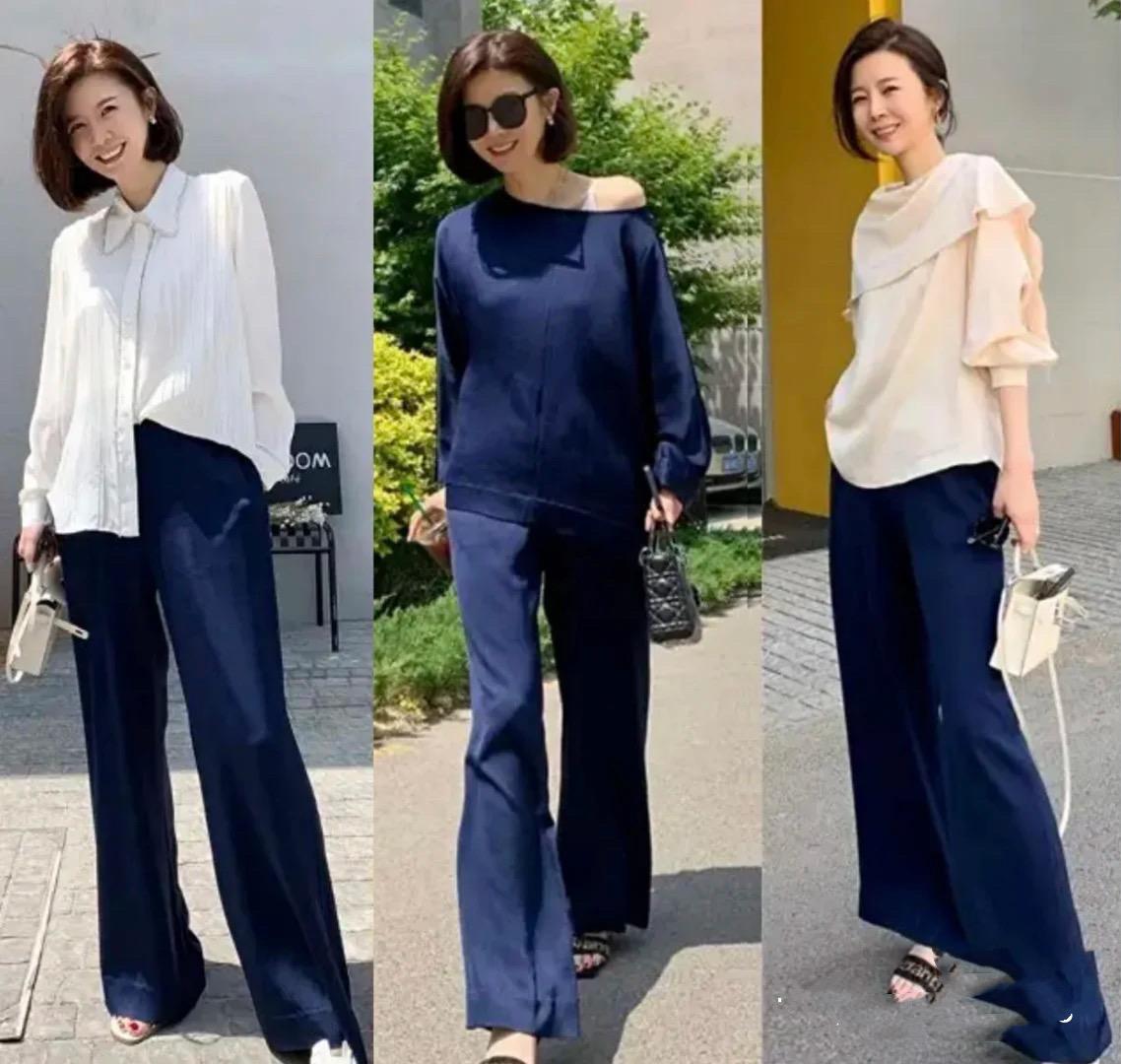 高腰的闊腿褲、直筒褲或者西裝褲,都應該保持及地或者及踝的長度。如果褲筒拖地的話,不僅壓個子、還很容易顯得拖沓。