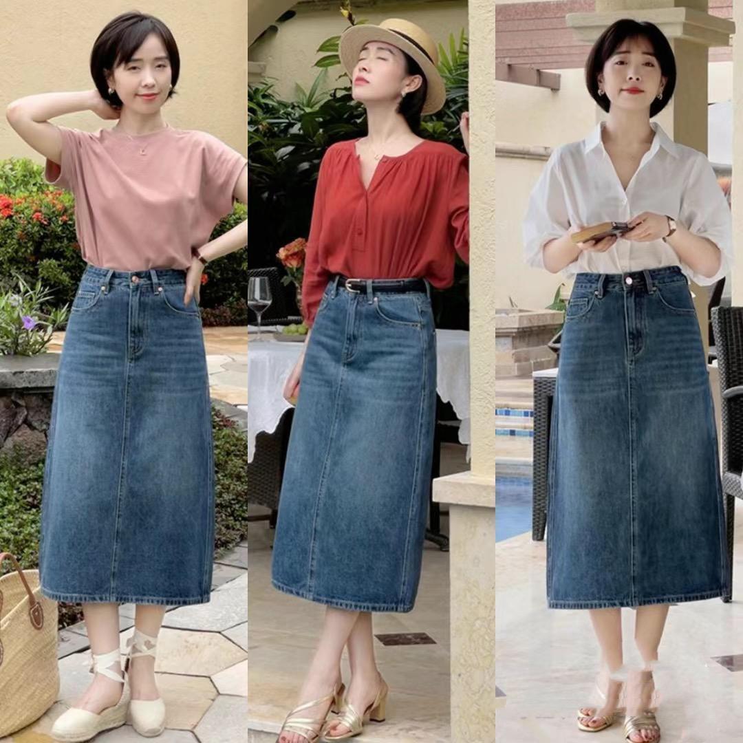 我們穿A字形的牛仔半身裙,可以配寬鬆的襯衫、或者T恤。只需要一個塞衣角的方式,就可以通過A字形牛仔半身裙,表現出視覺上的挺拔感。