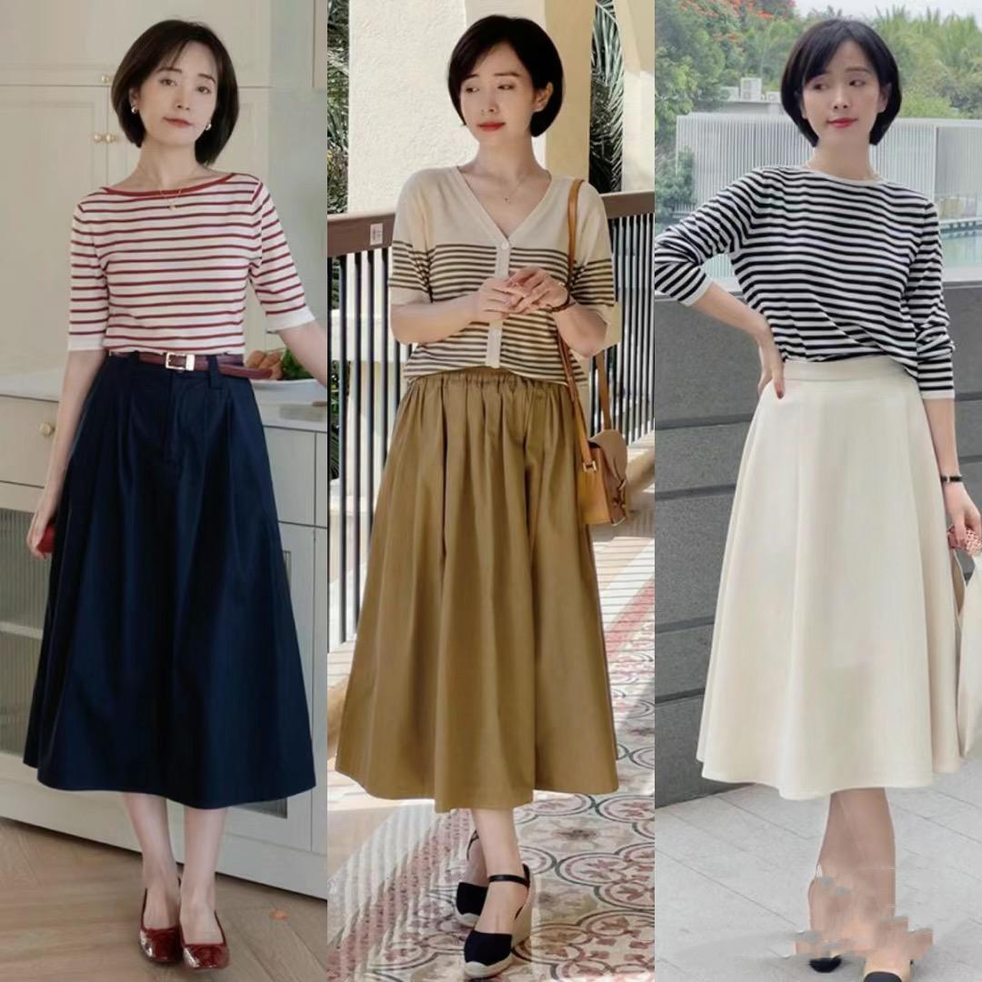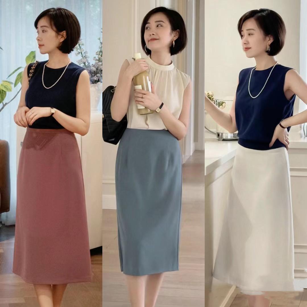 清涼感上衣配哪些款式的半身裙,更適合40+的女人