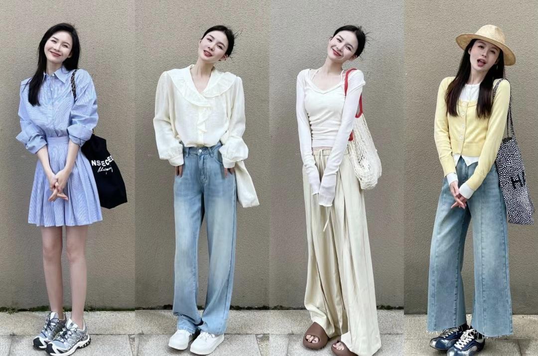 褲不拖地,在一定程度上避免了視覺上的拖沓感。我們可以選擇直筒的牛仔褲、或者九分的牛仔褲,簡單又清爽的褲型,穿起來也是很減齡。