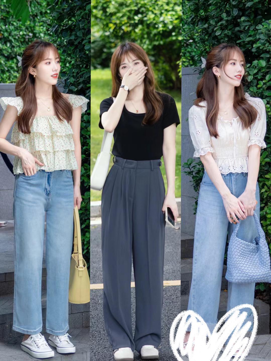 小個子女生選擇直筒牛仔褲的時候,儘量搭配稍微高腰的的款式。高腰的直筒牛仔褲,可以配蕾絲小衫,或者吊帶背心、基礎款的T恤,上短下長的搭配很洋氣顯高。