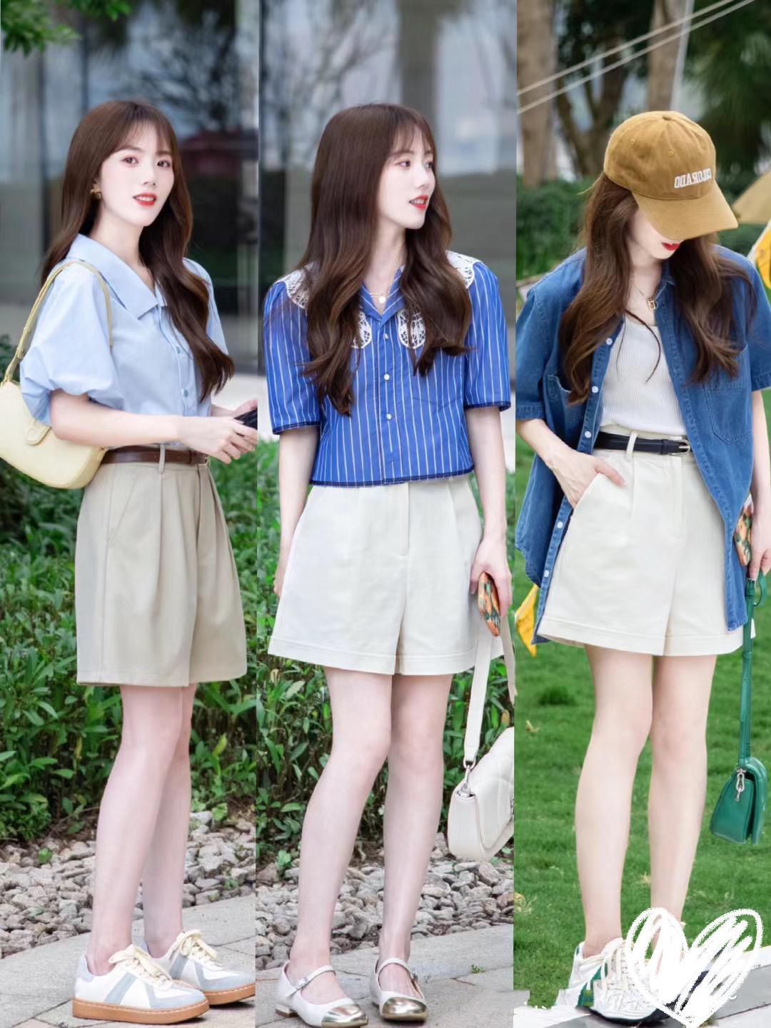 小個子女生可以通過高腰的A字形短褲,來修飾腿型和比例。通過腰線的A字形短褲,抬高腰線、也讓比例更加優越,是一種更顯腿長的方式。
