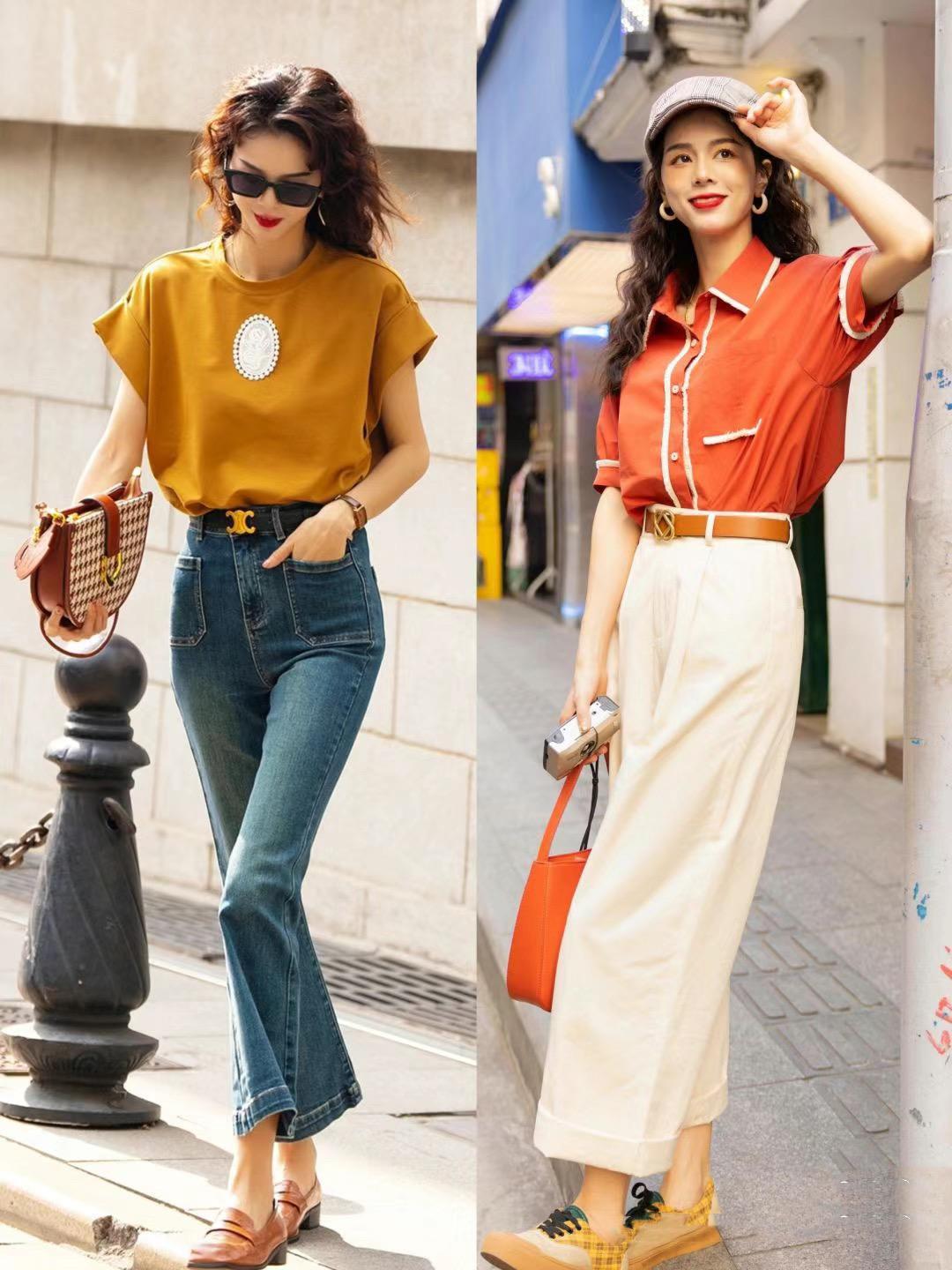 平時比較低調、或者長相比較普通的女人,最適合以這樣的方式來表現自己。隱藏自己的自卑與平淡,展現出更自信的光芒,比如色彩明亮的T恤或者復古風襯衫,搭配高腰褲,就簡單大氣。