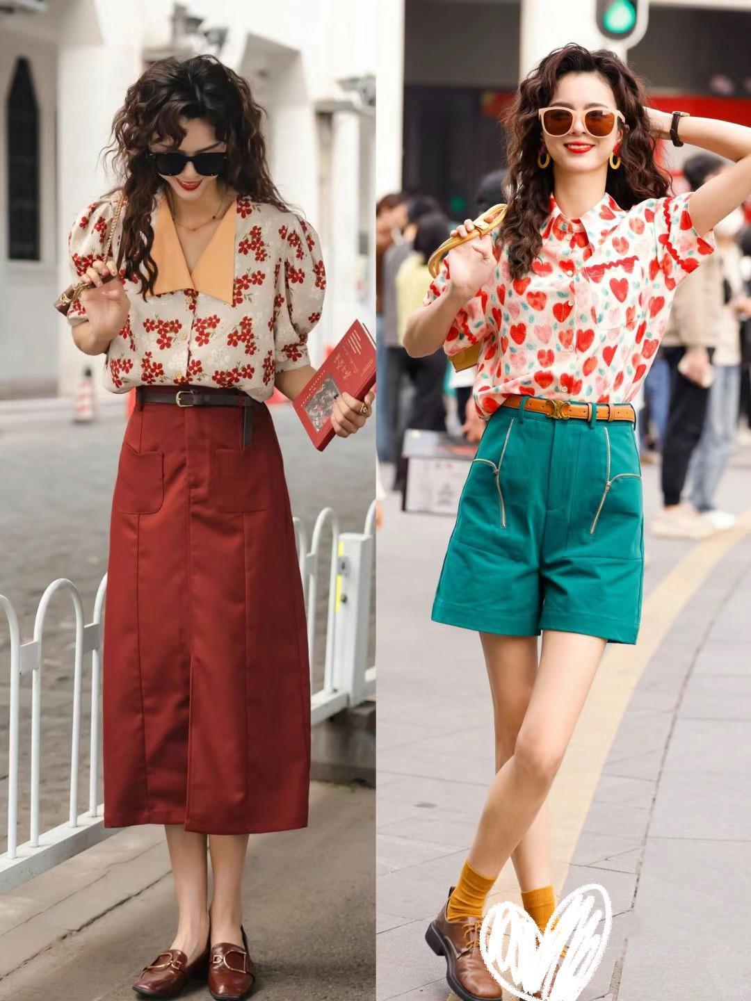 想要玩轉復古港風穿搭,搭配上的小心機也是不容忽視的。我們可以嘗試利用牛仔襯衫配紅色A字形短褲,紅藍配色也是高級醒目。