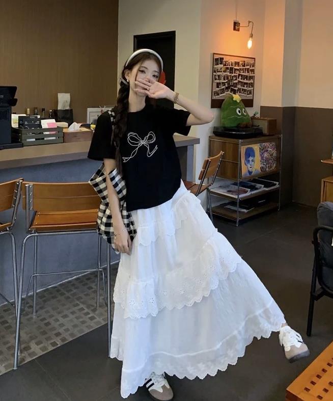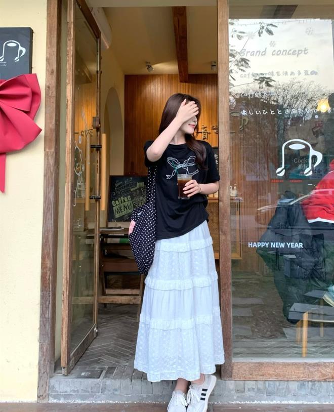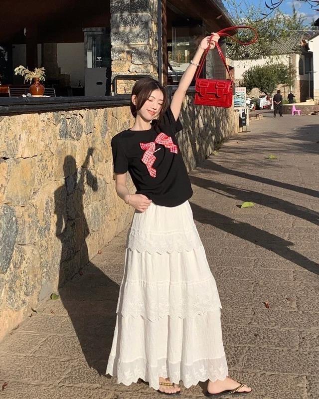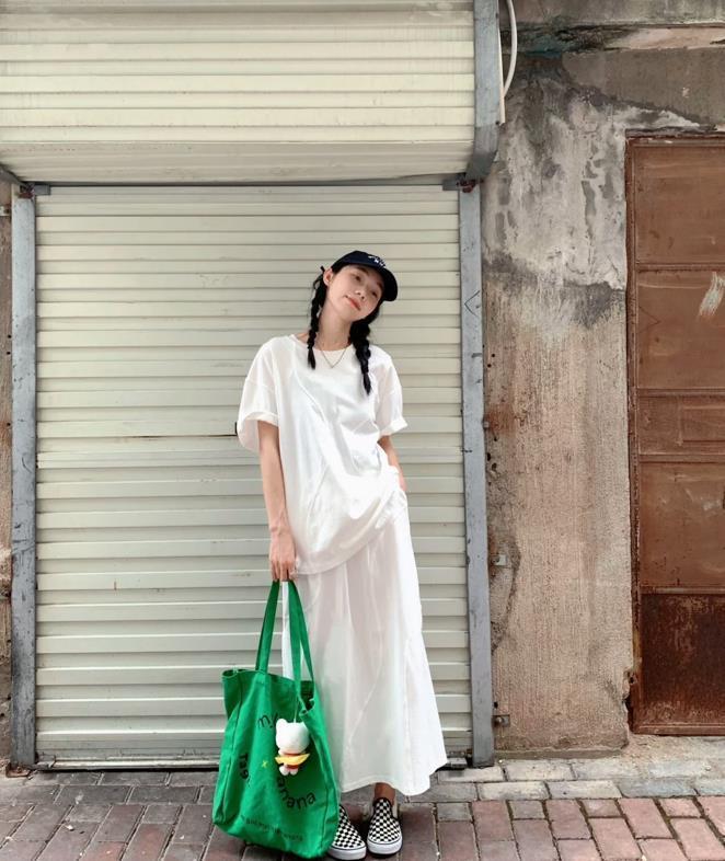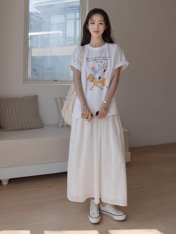 T恤+白色半裙,仙氣感十足