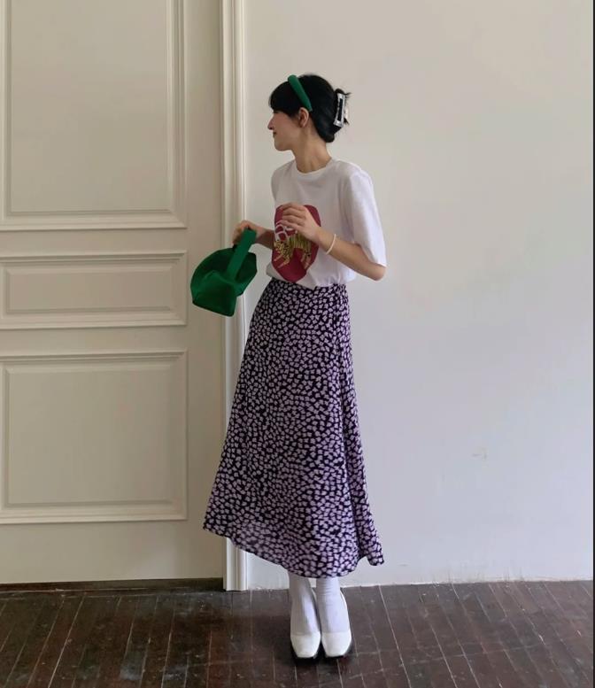 喜歡浪漫一些的穿搭,那麼可以試試t恤搭配碎花半裙,這可是一種既不失休閒,又充滿女性魅力的穿搭,不管是在春季,還是夏季,都能讓你迅速在人羣裏脫穎而出。