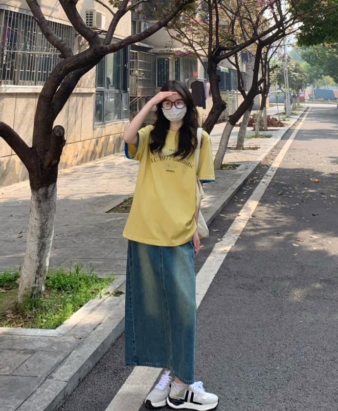 T恤+牛仔半裙,青春減齡少女範