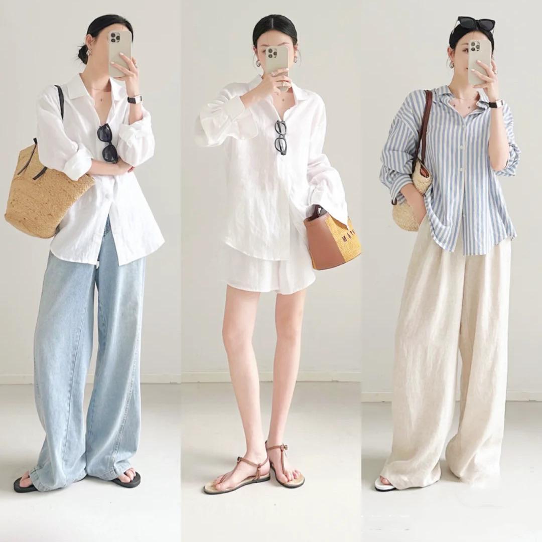 寬鬆的白襯衫、或者條紋襯衫,我們都可以選擇親膚透氣的棉麻材質。不像時裝風格一樣的醒目,卻更加自然大方,適當露出鎖骨線條也更顯精緻美。