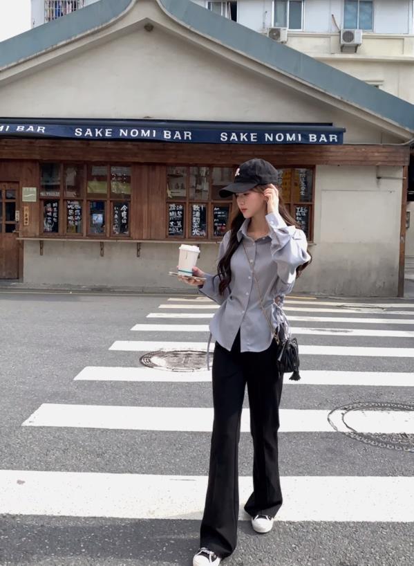 日常休閒逛街的時候,襯衫搭配微喇褲則展現出不同的魅力,你可以選擇一件色彩鮮豔,或是帶有圖案設計的款式,與牛仔微喇褲、黑色微喇褲相配,從而營造出一種輕鬆自在的氛圍感。