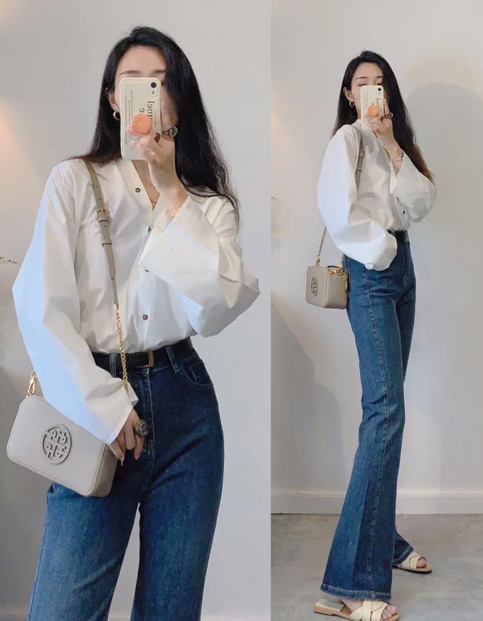 襯衫既然是一種經典且百搭的上衣,當然與什麼樣的下裝搭配,都是沒有違和感的,襯衫+微喇褲,這種搭配可是適合各種場合的,可以展現出不同的風格與魅力。