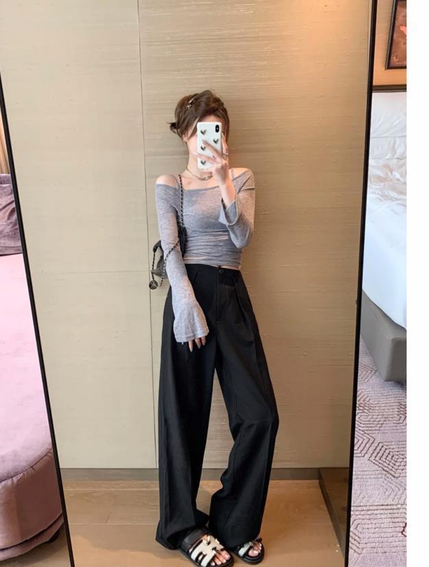 今年夏天最好看的涼鞋,自然少不了一雙涼拖鞋了,穿脫都十分方便,對於出門趕時間的姐妹,最合適了。在搭配上,不管你選擇了一雙什麼樣的涼拖鞋,都可以與各種衣服相配,灰色修身上衣+黑色西裝闊腿褲,黑白配色,實在是太耐看時髦了,也顯高級。