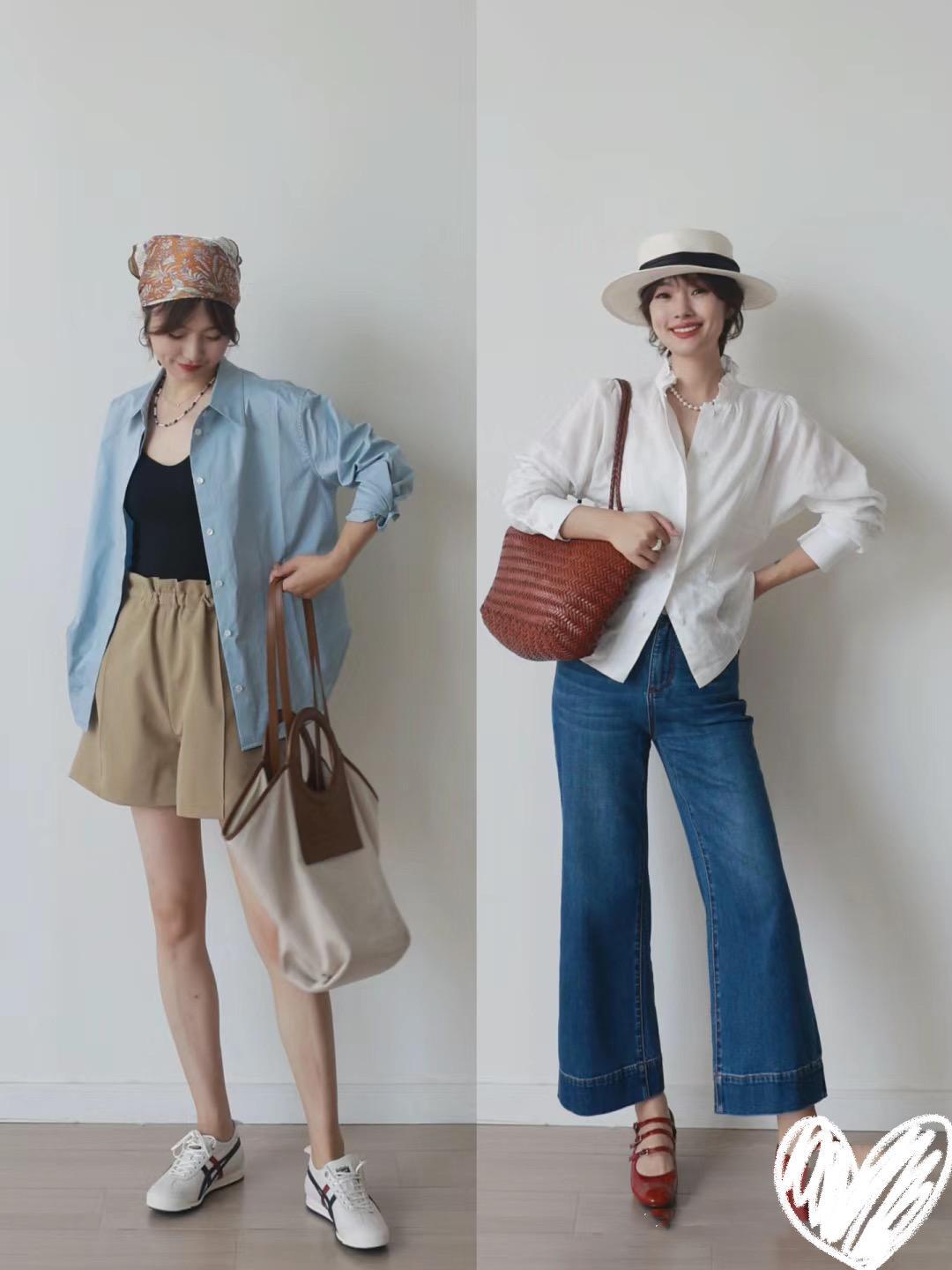 看似簡單基礎的白襯衫+牛仔短褲,竟然可以美的如此清新動人。白襯衫的款式,會更加細膩考究一點,小豎領、提花修飾,雅緻耐看。