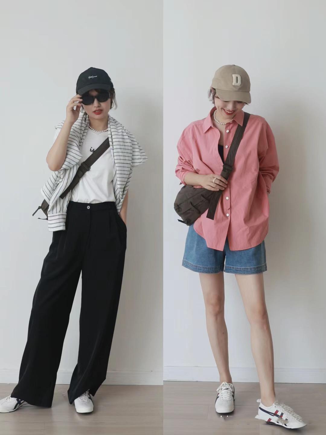 寬鬆的玫瑰粉襯衫,可以搭配高腰的直筒牛仔短褲穿着。紅藍配色,同樣都是做舊的元素,有一種更復古耐看的美,襯衫+直筒牛仔短褲隨性清爽、搭配一雙運動鞋更顯年輕了。