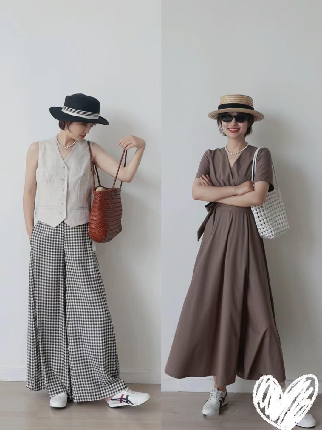 棉麻質感的連衣裙,修身剪裁的馬甲、或者格子闊腿褲,穿起來都格外的時髦醒目。尤其是燕麥的馬甲+高腰闊腿褲的搭配,簡約洋氣、還具備了包容性。