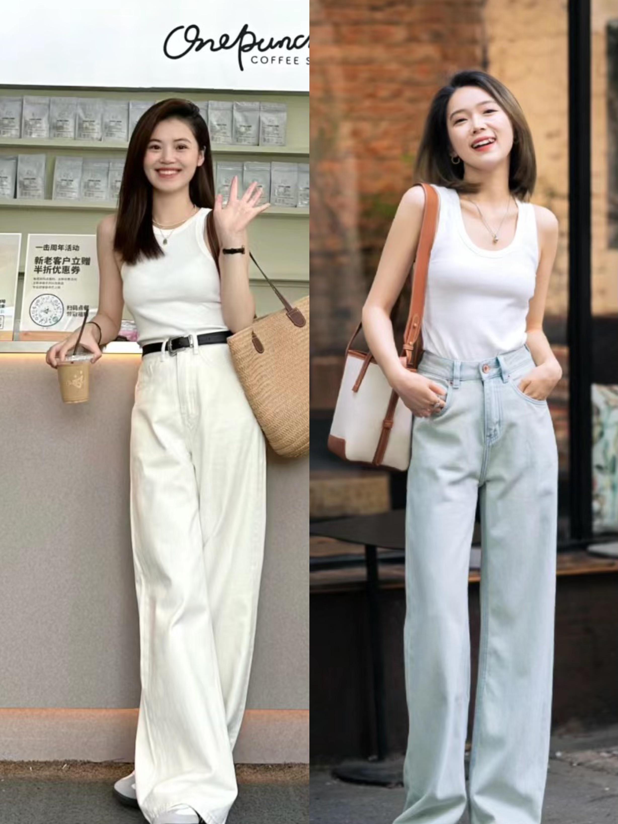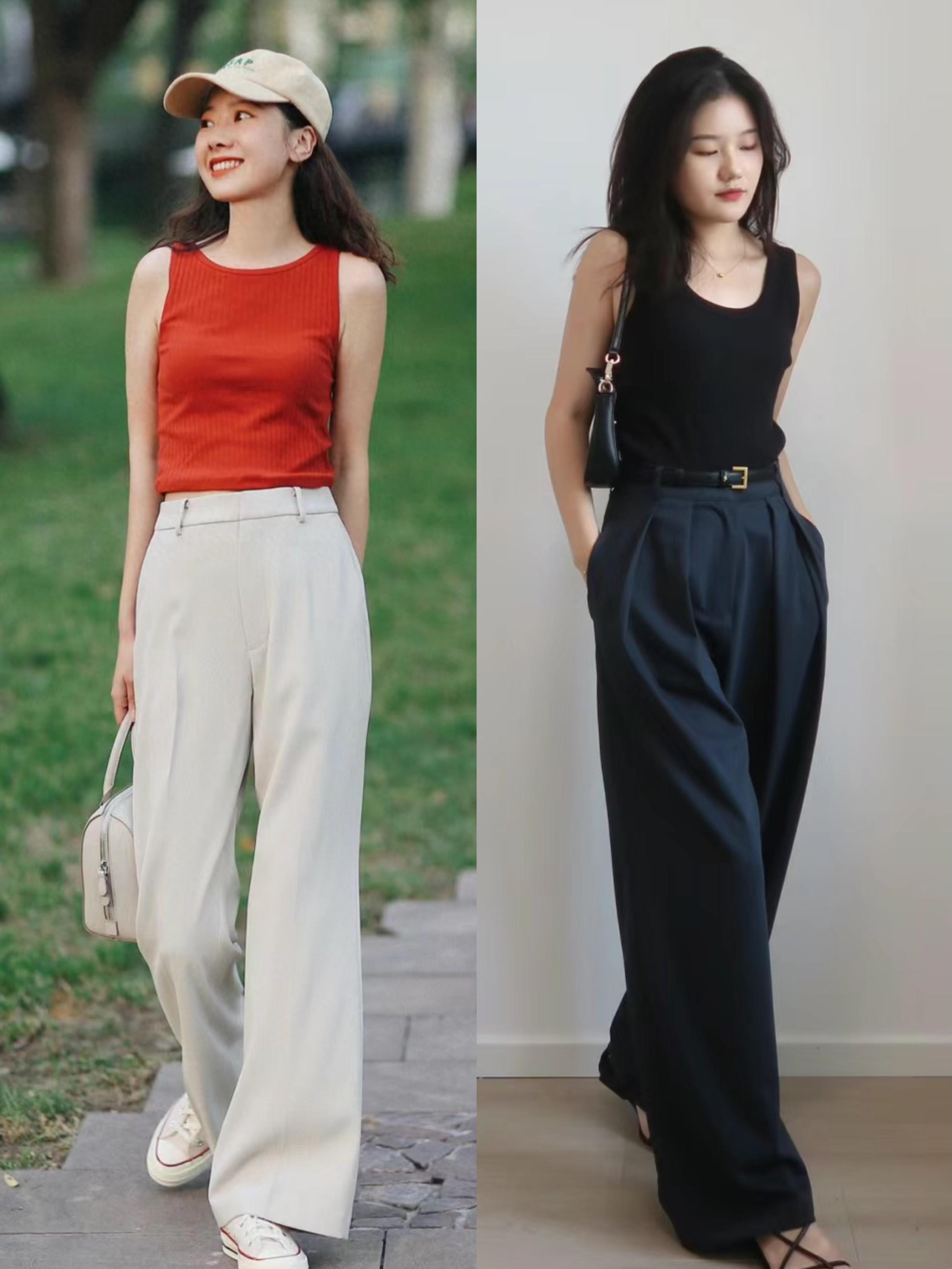 以基礎款的小背心,來搭配高腰的闊腿褲,清爽洋氣又非常的醒目。像這種白色小背心,也是爺爺衫的一種,款式基礎又很大方。